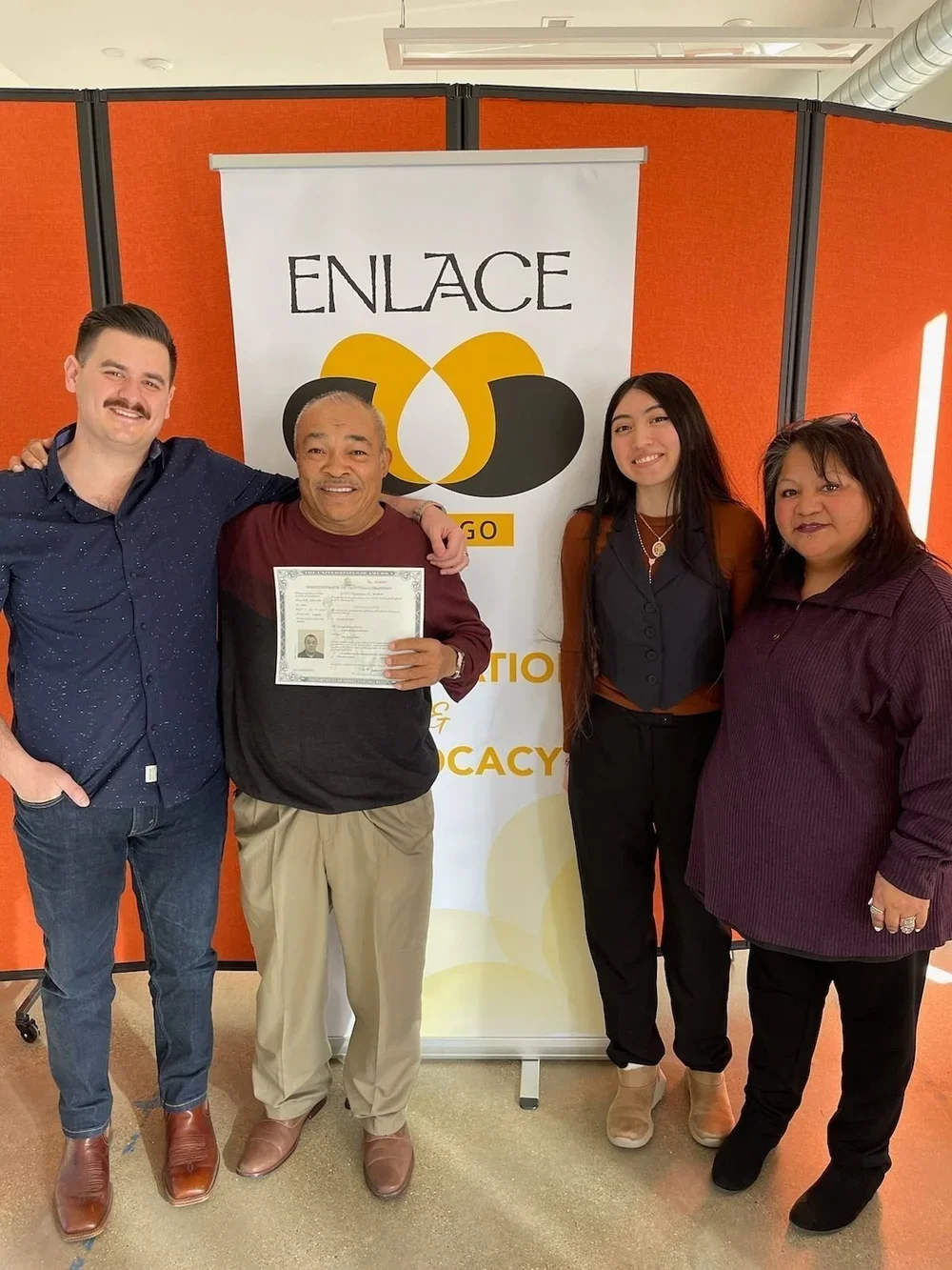 After a few months of preparation and patience, Pablo was officially a citizen of the United States! As he reflected on his case, he said, “I’m so grateful for Enlace, my attorney AJ, and the help I have received here. I didn’t know about this resource here in Little Village, but now that I know about it, I tell everyone!”